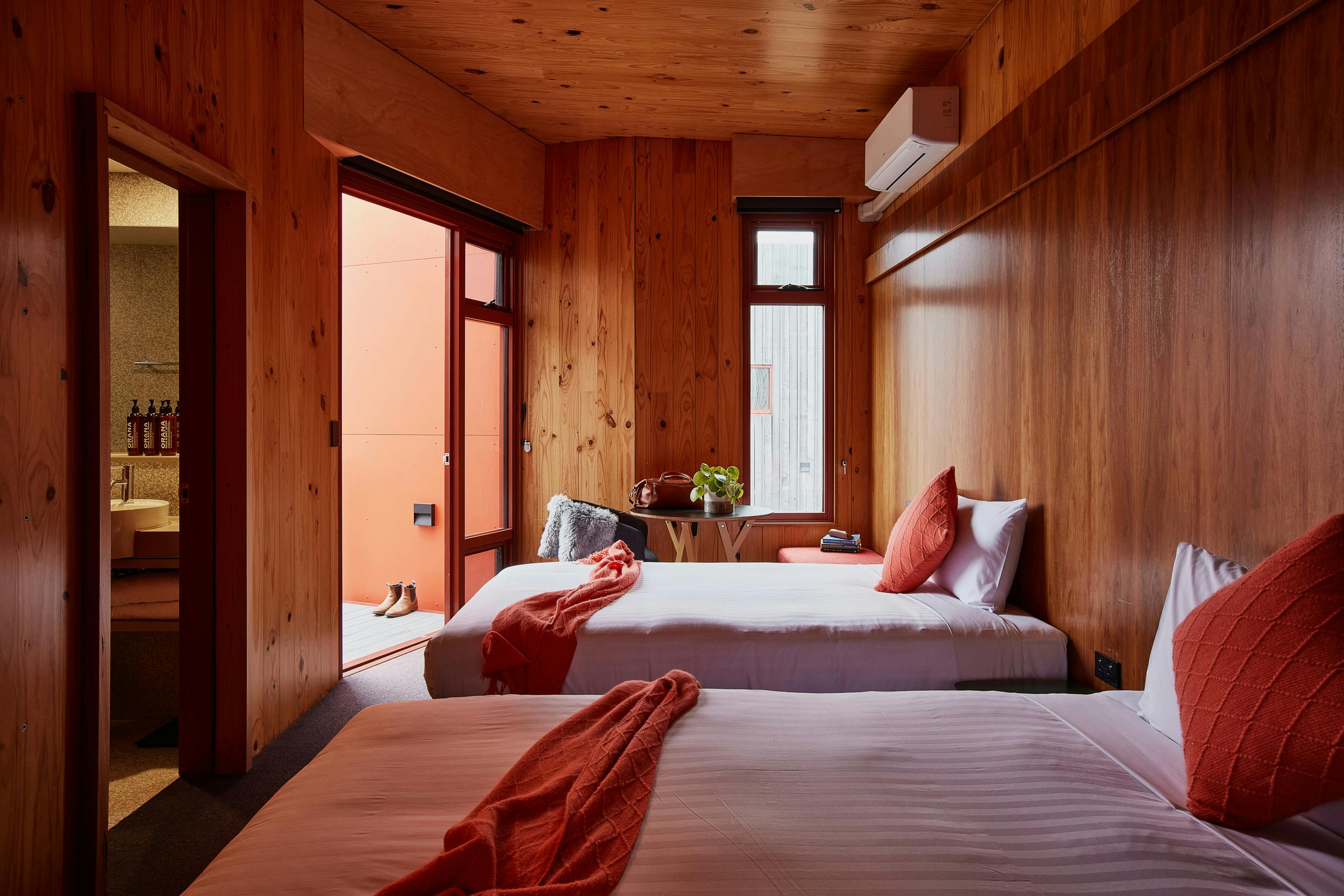 Four Bedroom Family Pavilion perfect for a large family stay with a common room, balcony and veranda. The Family Pavilion contains one king bed orchard room, two king single twin paddock rooms, a small balcony, kitchenette, a queen bed paddock room. Ideal for one large family or two family of four for a long weekend getaway or stay anytime throughout the year.